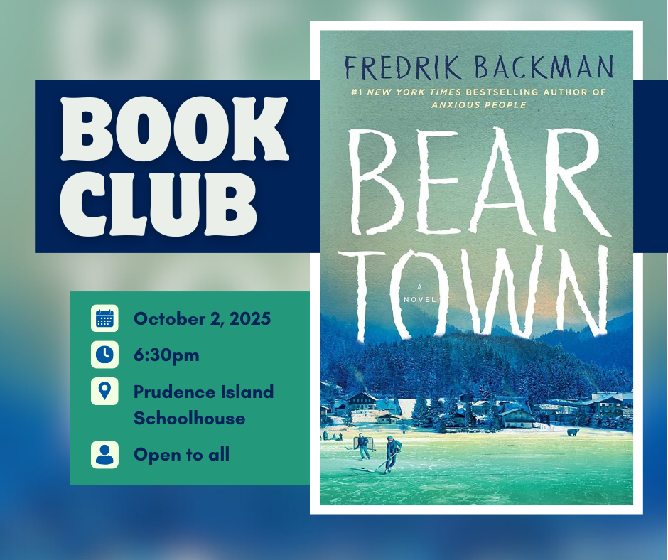 Join us Oct 2 at 6:30pm to discuss Beartown by Fredrik Backman. To join online, email prudenceislandschoolfoundation[at]gmail.com.